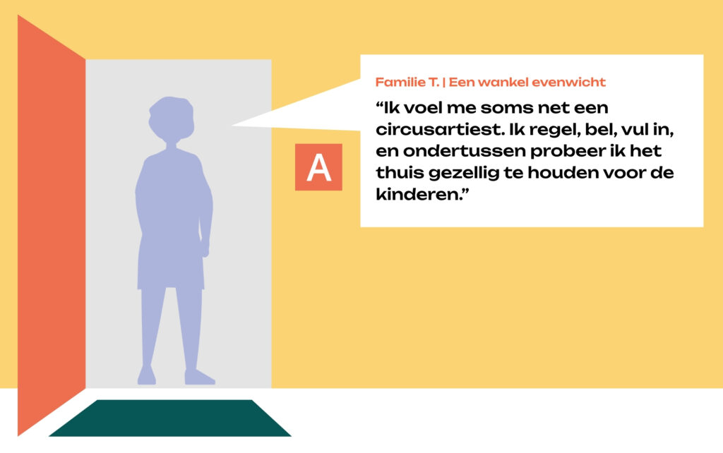 Een samengesteld gezin, twee ouders in de ziektewet, en elke maand weer spanning over geld. Achter de voordeur van familie T. wordt alles op alles gezet om het gezin draaiende te houden. Het is voortdurend balanceren tussen zorg, zorgen en de wil om vooruit te komen. Mevrouw T. vertelt samen met coach Julia hoe ze stap voor stap werken aan rust in huis en ruimte voor het gezin.